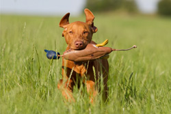 Er ist so richtig happy, wenn er etwas bringen darf. Egal, ob Ball, Spieltau oder Frisbee: Hauptsache, das Spielzeug fliegt möglichst weit und darf geholt werden. Die meisten Apportier-Asse finden gerade bunte Bällchen einfach unwiderstehlich. Dabei müssen Sie aber aufpassen, dass Ihr Hund nicht zum Ball-Junkie wird: Lassen Sie den Hund ruhig zwischendurch mal Sitz machen, bevor er los spurten darf, um den Ball zu holen. Unruhige Kandidaten warten bis sich das Spielzeug nicht mehr bewegt und werden dann los geschickt. Oder verstecken Sie das Spielzeug, lassen ihn suchen und wecken so ganz neue Spieltalente in ihm. Übrigens: Viele Apportierhunde sind durchaus auch für das Wasser zu begeistern. Spendieren Sie ihm doch mal ein wassergeeignetes Spielzeug und probieren aus, ob er es aus dem Bach holt. Am Anfang werfen Sie es noch nicht weit hinein, damit Sie es wieder kriegen können, falls er doch keine Wasserratte ist. Die meisten Apportier-Asse hechten jedoch begeistert hinterher!